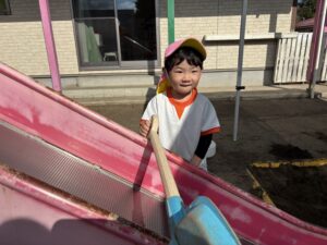 「お山作ってるの?」と聞くと「火山だよ!爆発するから大変!」と😆