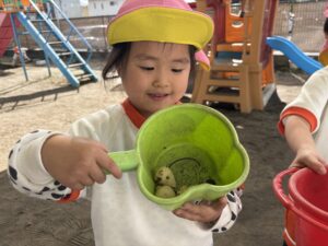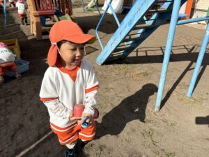 なんの球根かわかりませんが、どうしても持って帰ってママに見せたいと言われたのでビニール袋に入れてあげると大事そうにカバンにしまいました。