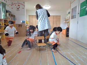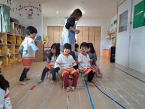 発表会練習のあと、時間がたくさんあったので子どもたちのリクエストでいすとりゲームをしました。