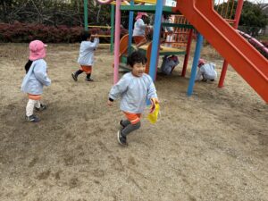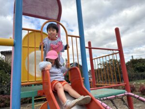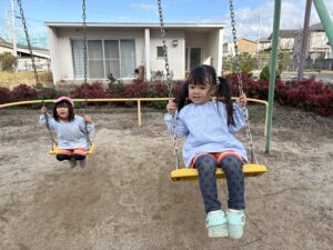 保育園のすぐ近くの団地の中にある公園。小さな公園ですが、滑り台もブランコもあり、子どもたちはここが大好きです。