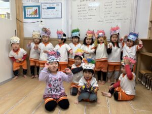 どこからともなく「おにはそと、ふくはうち、ぱらっ ぱらっ ぱらっ ぱらっ まめのおと〜♪」と歌い始め、みんなで大合唱🥰